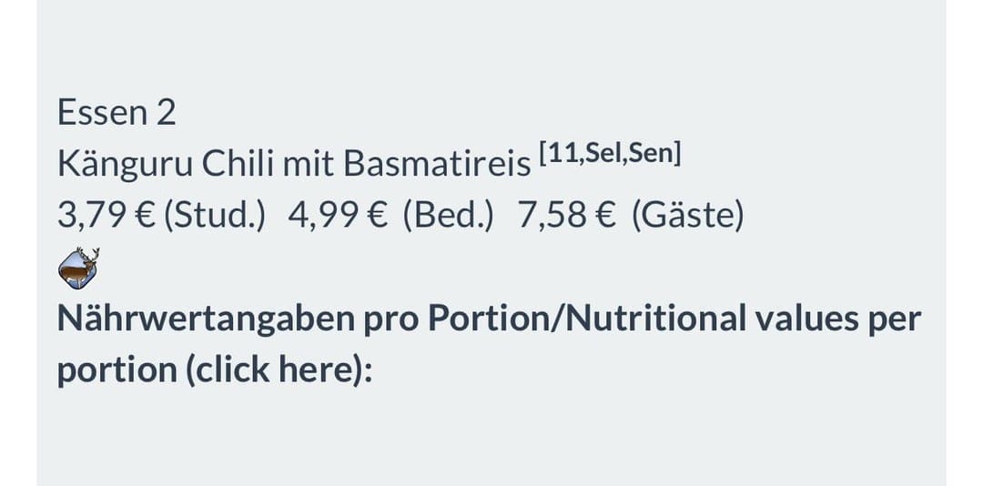 Wenn euer Post viral geht, landet ihr dann demnächst eventuell auch in der FAZ. In diesem Fall war es ein Post über ein "besonderes" Gericht an der Mensa der FAU Erlangen. Dort hat die Mensa Langemarckplatz Känguru Chili mit Basmatireis für 3,79€ angeboten angeboten. Dem Bericht der FAZ nach hat sich das Gericht mit etwa 400 Portionen gut verkauft, was ich nachvollziehen kann, da Känguru wirklich ziemlich gut schmeckt. Den ursprünglichen Reddit Post findet ihr hier:
